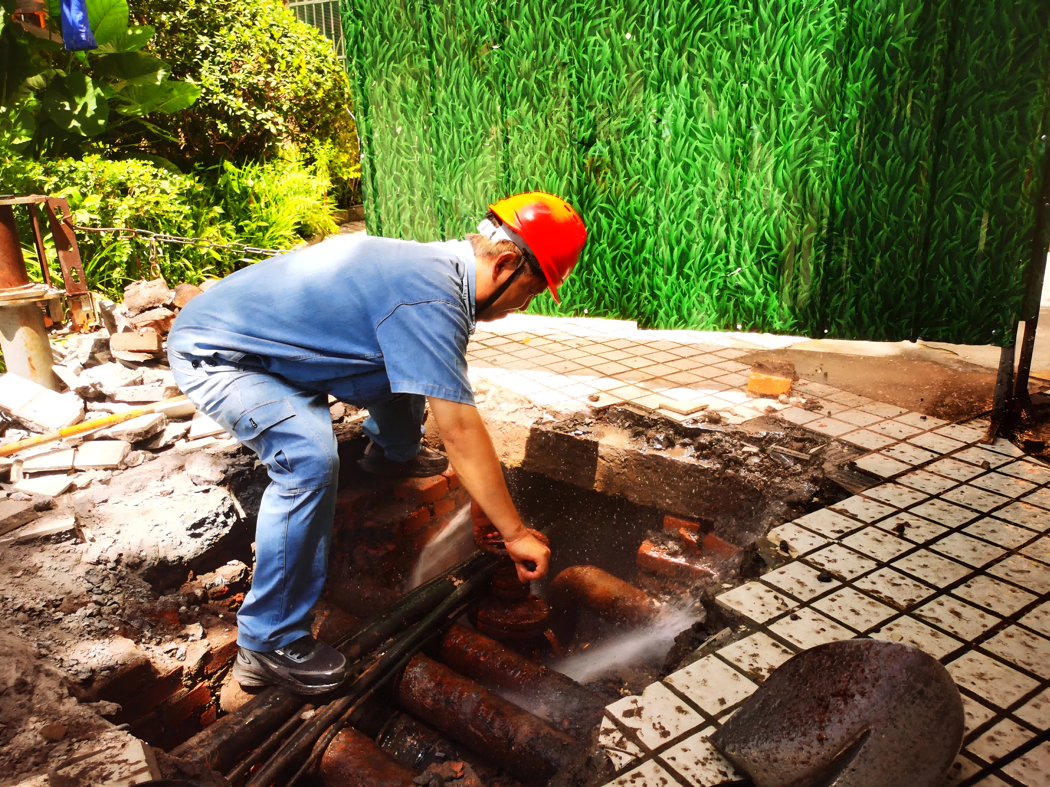 在這支水務(wù)藍(lán)隊(duì)伍里有這樣一位衛(wèi)士——管道維修工張國(guó)彪,他頭頂烈日,腳踏熱土,始終堅(jiān)守城區(qū)管道巡檢第一線。此刻的他正蹲在破裂水管旁,藍(lán)色工裝早已被汗水浸透,緊緊貼在背上。他抹了把臉,任憑汗珠混著泥水滑落,手里的扳手卻一刻沒停,這已是他今天處理的第二個(gè)搶修點(diǎn)。