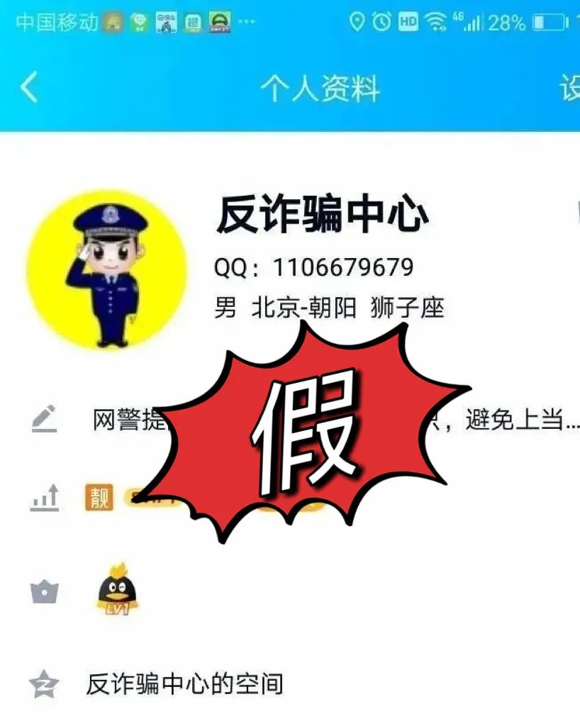 本期兩個(gè)案例中的市民遇到的仿冒“反詐中心工作人員”詐騙,是詐騙犯罪分子又一次的手段升級(jí)。 這類騙局中,騙子將QQ昵稱設(shè)置成“反詐中心”等名字,將頭像設(shè)置成國(guó)徽或反詐中心圖標(biāo),有的在空間圖片中,放處理好的照片等等進(jìn)行偽裝,讓受害人誤以為是真的反詐中心等部門(mén)的工作QQ。