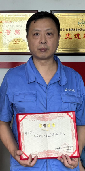 當(dāng)值時(shí)他要將30公斤左右消毒粉加入配藥罐,克服刺鼻、刺眼、衣服被腐蝕等困難是家常便飯;還要將1-2噸除磷劑原液兌入罐中,任務(wù)繁重也毫無怨言。面對進(jìn)水水質(zhì)的喜怒無常,環(huán)保要求極高的情況,他結(jié)合理論知識與常年積累的經(jīng)驗(yàn),將安全生產(chǎn)牢記心中,做到提前預(yù)判變化,及時(shí)處理異常情況,協(xié)調(diào)員工周密配合,實(shí)現(xiàn)年年達(dá)標(biāo)排放?;萑疽淮未瓮ㄟ^了央督、省督、市級相關(guān)等檢查,并獲得各項(xiàng)環(huán)保和安全榮譽(yù),其中就有他的一份功勞。