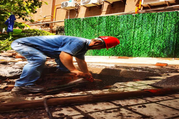 在這支水務(wù)藍(lán)隊(duì)伍里有這樣一位衛(wèi)士——管道維修工張國(guó)彪,他頭頂烈日,腳踏熱土,始終堅(jiān)守城區(qū)管道巡檢第一線。此刻的他正蹲在破裂水管旁,藍(lán)色工裝早已被汗水浸透,緊緊貼在背上。他抹了把臉,任憑汗珠混著泥水滑落,手里的扳手卻一刻沒(méi)停,這已是他今天處理的第二個(gè)搶修點(diǎn)。