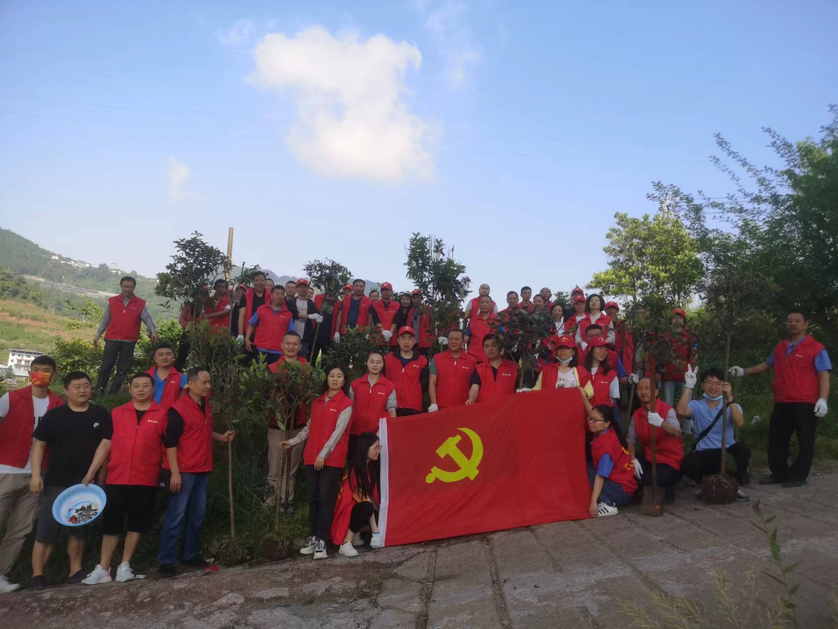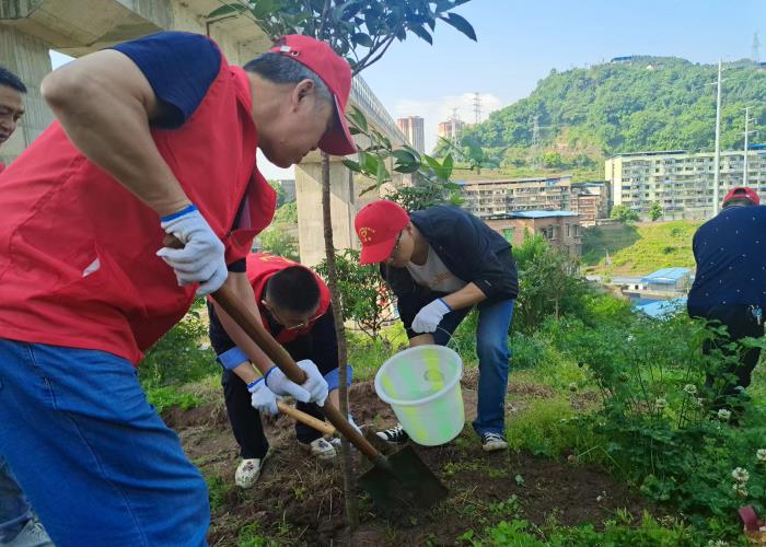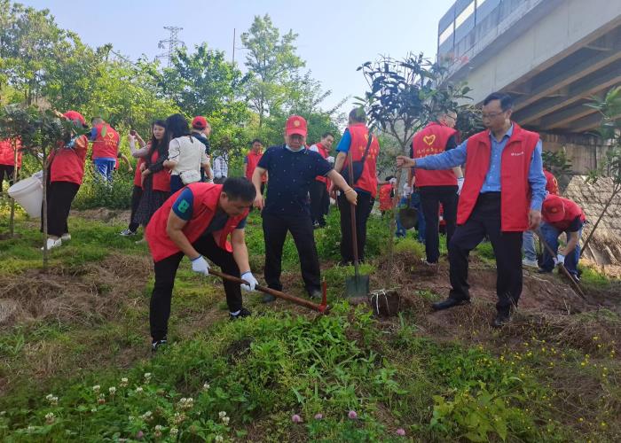 活動中,志愿者們揮鍬鏟土,栽植樹苗、提水澆灌,三人成組、五人成團,每道工序都做得認真仔細、一絲不茍,志愿者們更是爭先恐后,干勁十足。一棵棵新栽種的樹苗亭亭玉立,在明媚的陽光中呈現(xiàn)出勃勃生機,為大地平添一抹新綠。
