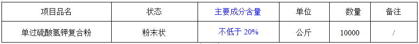 2.1 項目名稱:達州市惠泉污水處理有限公司2020年度單過硫酸氫鉀復合粉采購項目