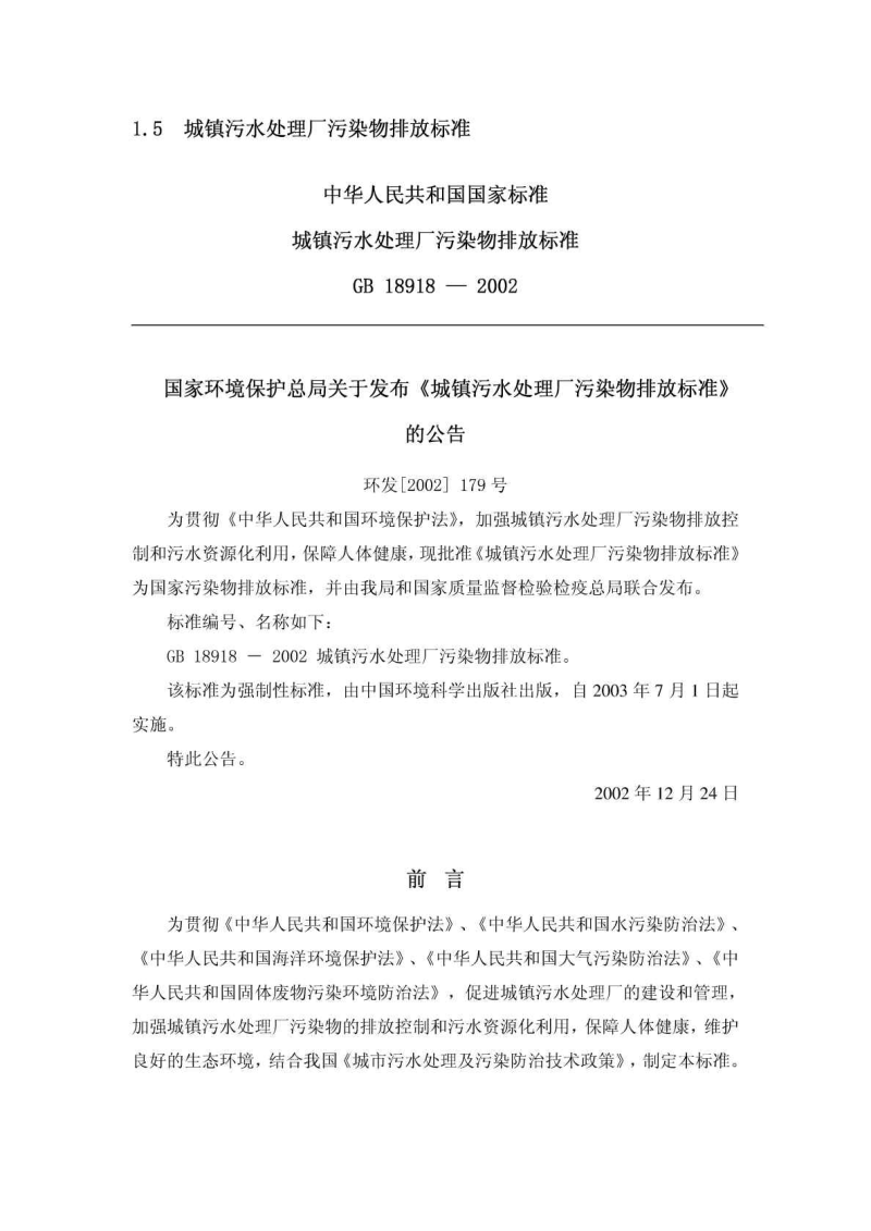 標題:城鎮(zhèn)污水處理廠污染物排放標準